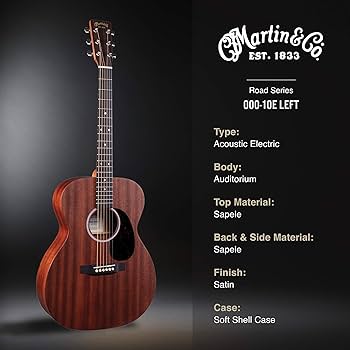The Martin 000-10E is a solid-wood Auditorium acoustic-electric guitar from the Road Series, designed for players seeking authentic Martin tone in a durable, stage-ready package. Handcrafted in Nazareth, Pennsylvania, it features all-sapele construction for rich, full-bodied sound with balanced projection. Ideal for folk, blues, country, and singer-songwriters across Australia, the 000-10E offers 80% of a D-18’s performance at half the price, making it a gigging workhorse with Martin E1 electronics and a premium softshell case included.